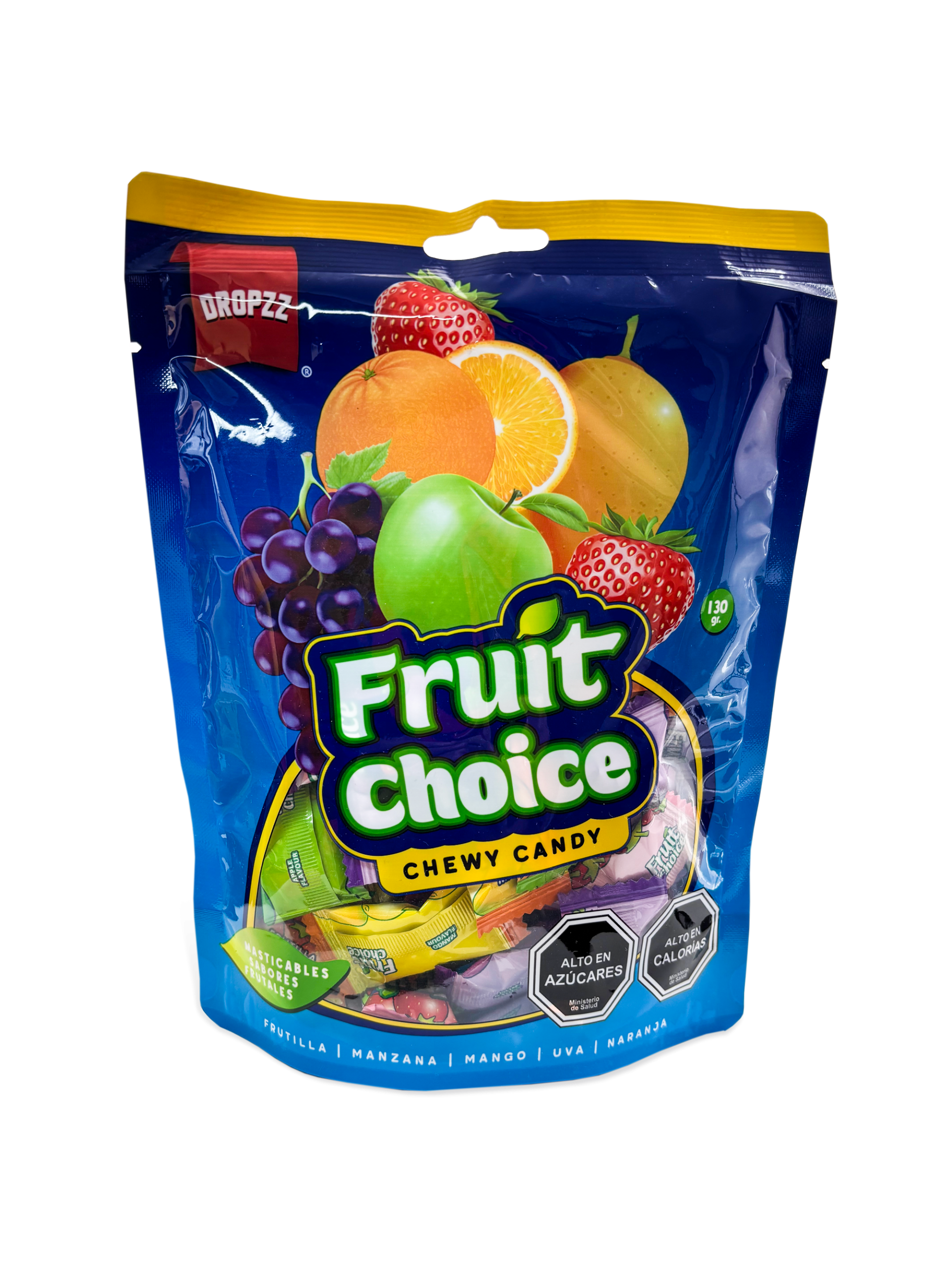 Confites surtidos de sabores frutales en bolsa de 130g. Dulces y prácticos para compartir.